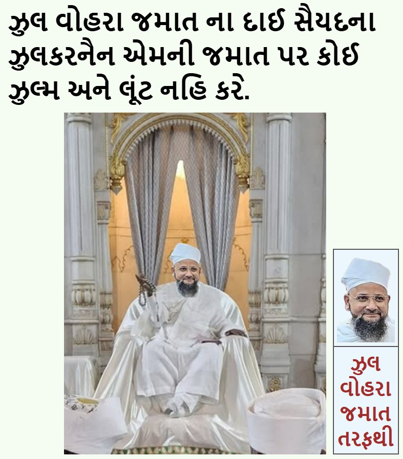 | 14 | | ઝુલ વોહરા જમાત નું આ પિક્ચર મુકશો? https://bohras.tech/zv1.jpg |
